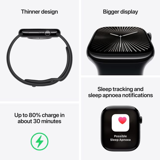 Apple Watch Series 11, 42mm, Space Grey Aluminium Case, GPS [2025] - Black Sport Band - S/M