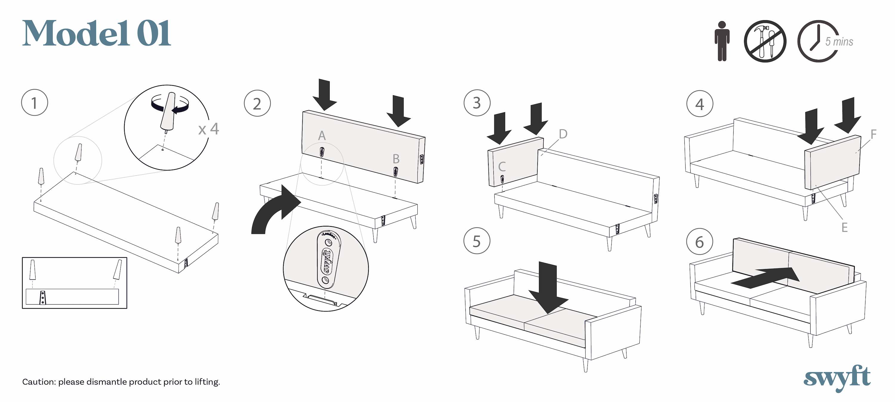 Embedded in every Swyft product is our unique Swyft-lok mechanism (which is a fancy way of saying you can assemble any Swyft product without the use of tools.). We wanted to design a product that was easy to stock and transport, could be lifted by one or two people and would eliminate any potential access issues for all involved. It was also important that assembly could be achieved by one or two people, with no tools, in under 5 minutes. The key to success was our innovative Swyft-lok fastening system.