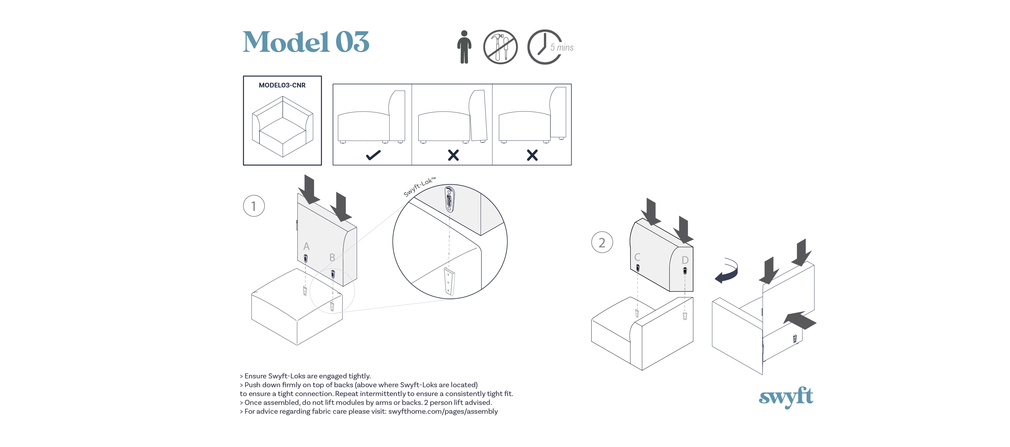 The Model 03 corner module can be paired with all of our modules and is needed to complete any Model 03 corner sofa.Â