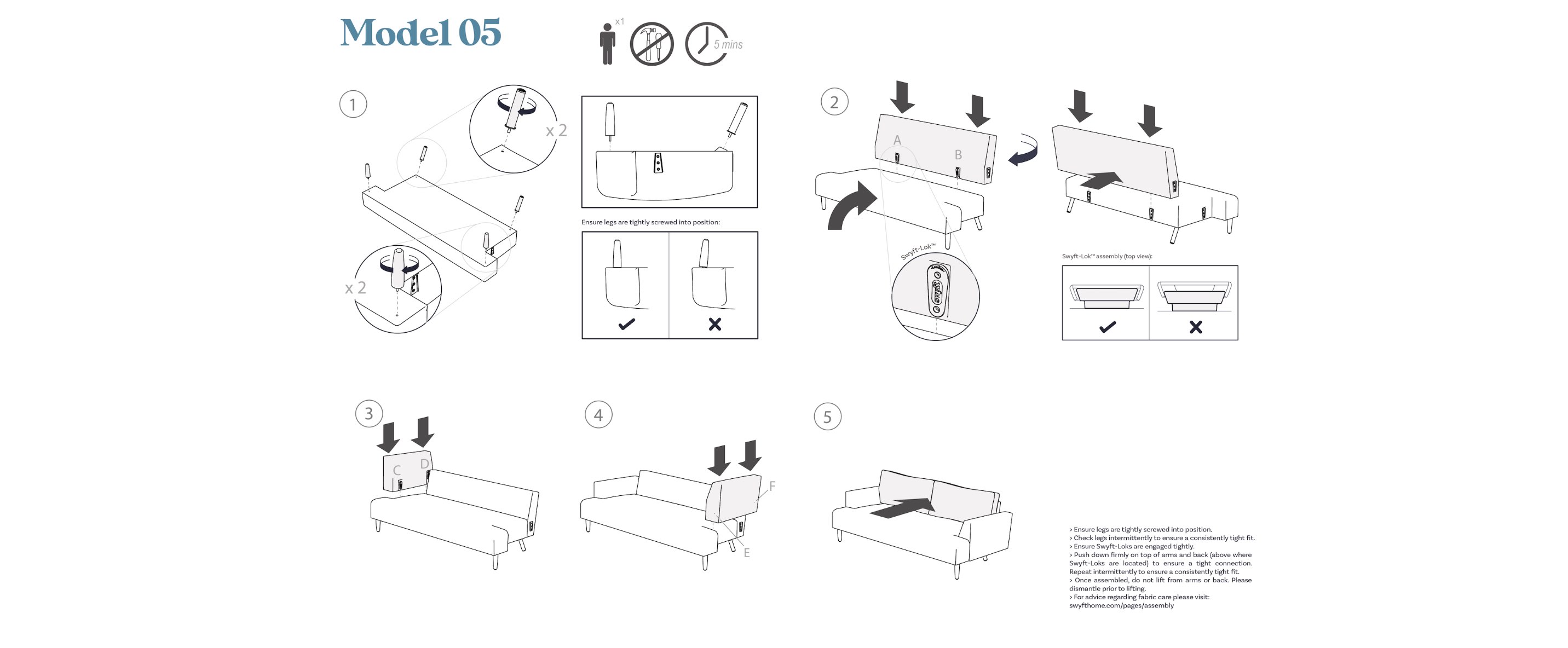 As with our previous collections, its style follows a similar modernist, minimalism look and feel. There are a few key differences though; To provide the illusion of a deeper seat and to exaggerate that sinking feel, Model 05’s seat uses zig zag springs to create a domed, curved shape. The back is built with a 10 degree angle, so when you sit back you become completely immersed in the sofa. For added comfort and support, the Model 05 also comes with higher back cushions.Â