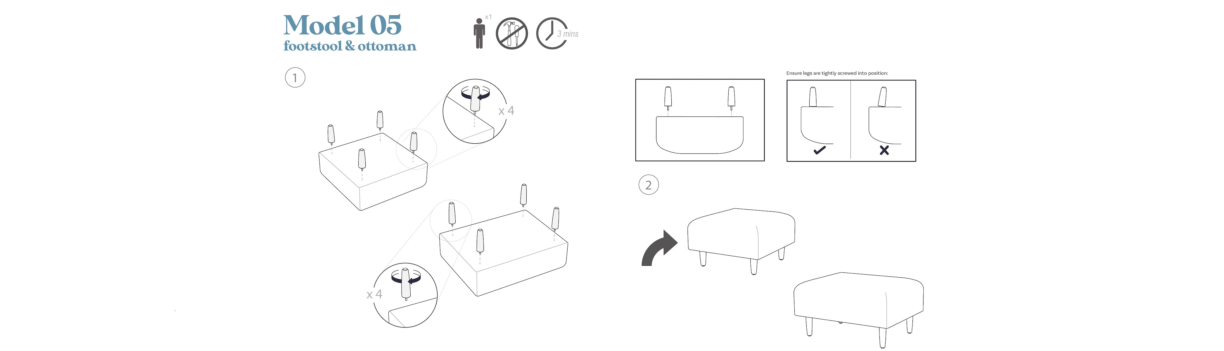 Designed to follow the Model 05’s minimalist design, the ottoman allows you to fully relax into the sofa whilst giving your feet room to spread.Â