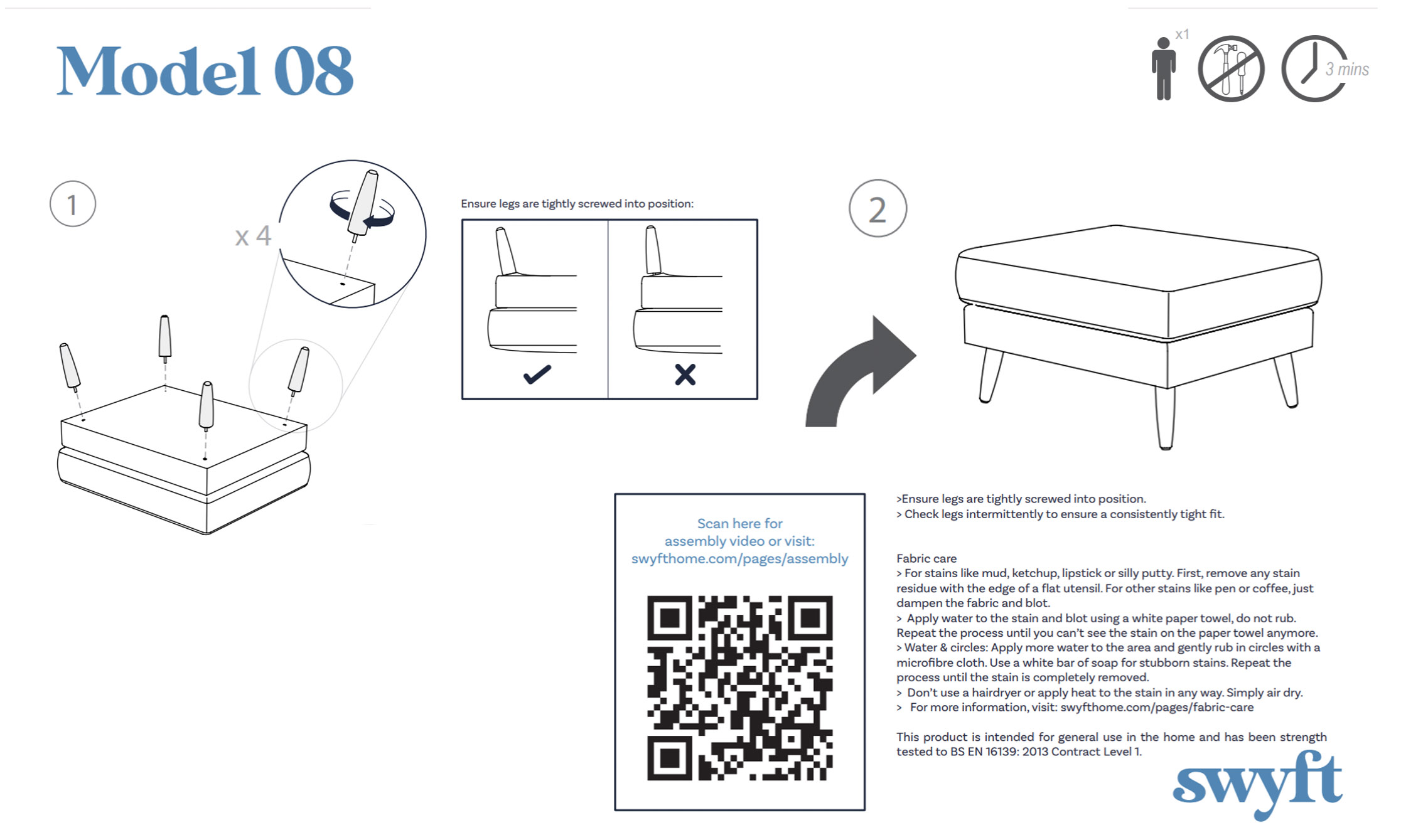 Make Sunday snoozing a priority with the Model 08 ottoman. Treat your feet to layers of bounce-back foam - ideal for weekend sprawling. Add this extra comfy footstool to your favourite sofa, with over 50 fabric colours to choose from.Â